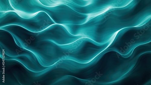 © Rodica, Obraz premium Abstract teal waves: flowing lines and rhythmic patterns
