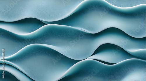 Obraz premium Abstract teal waves, undulating textured surface, 3D rendered design, calming...