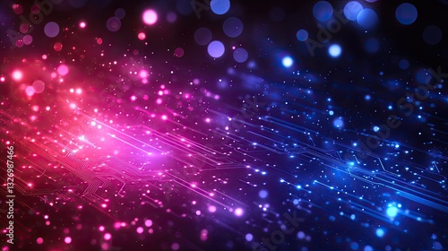 © Budi, Fototapeta premium Abstract tech background, glowing circuit lines, pink blue bokeh, digital future