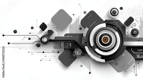 © BOJOShop, Fototapeta premium Abstract Tech Background Grey Black White Geometric Shapes Network Digital Design In