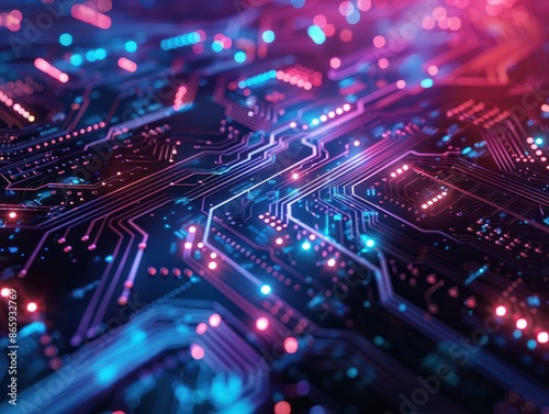 © Johannes, Obraz premium Abstract tech background with holographic effect, introduction future technology workflow