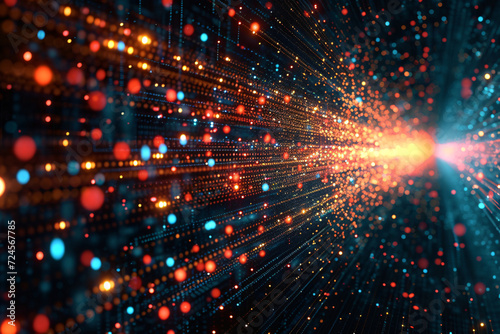 Obraz premium Abstract tech data stream with light burst at the end