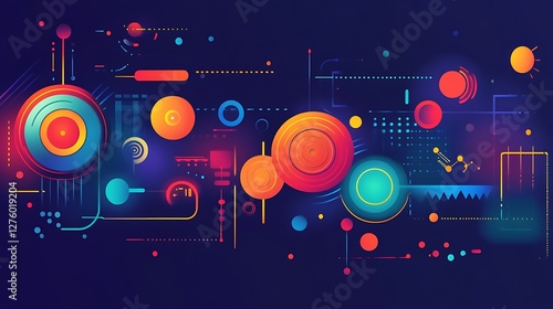 © lampung, Obraz premium Abstract tech design, vibrant circles, dark background, website banner
