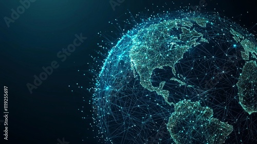 © Patcharin, Obraz premium Abstract tech globe connected by minimalist data lines in a modern business room, flat design, graphic illustration --chaos 20 --ar 16:9 -