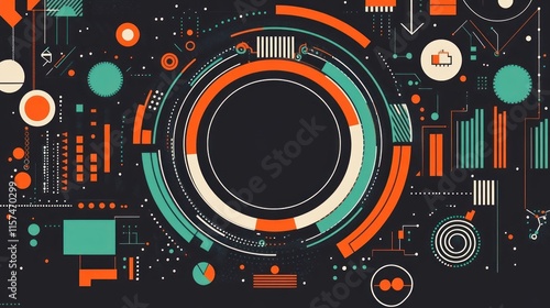 Obraz premium Abstract Tech Interface Design Circular Elements Orange Teal