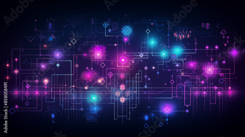 Obraz premium Abstract Tech Network with Neon Highlights and Complex Patterns