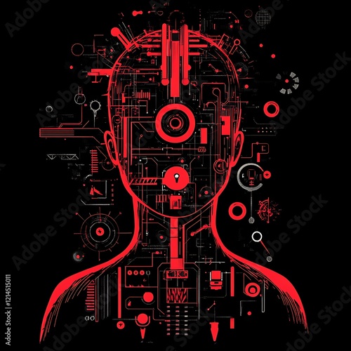 Obraz premium Abstract techno human head, futuristic design, graphic art, possible use as a t-shirt design