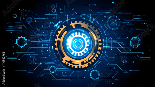 © Home StudioX, Obraz premium Abstract technological background with glowing circular gear.
