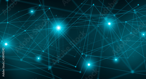 © Prostock-studio, Fototapeta premium Abstract Technological Background With Glowing Polygonal Lines And Dots Over Dark Background
