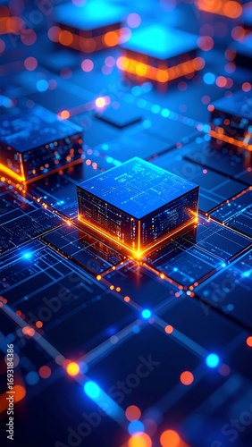 Obraz premium Abstract technological circuit board with glowing cubes