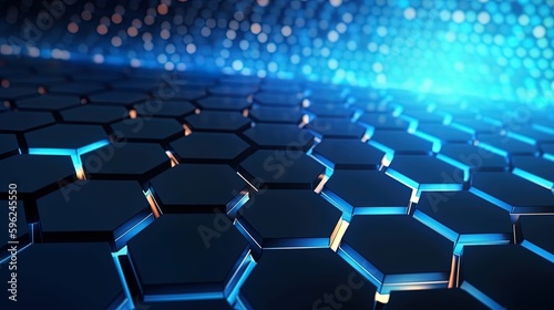 © aporn, Obraz premium Abstract technological hexagonal background digital Technology Network Background Illustration Futuristic point wave.