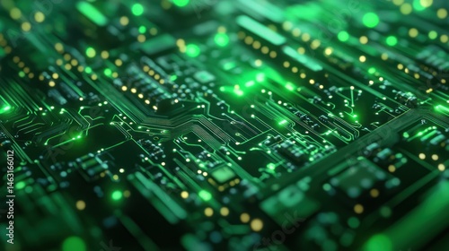 Fototapeta premium Abstract technological motherboard with luminous circuits and glowing...