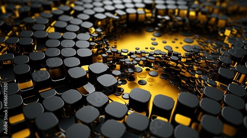 © Bargais, Obraz premium Abstract technology background, black and yellow. Generative AI.
