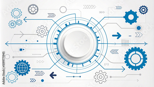 Obraz premium Abstract Technology Background: Gears, Circuits, and Data Flow