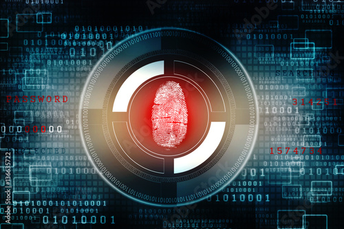 © blackboard, Obraz premium Abstract technology background.Security system concept with fingerprint