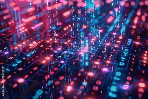 © youriy, Obraz premium Abstract technology background with blue and red binary code matrix