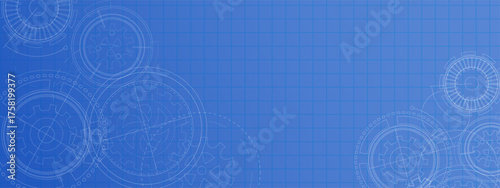 © Julisart, Fototapeta premium Abstract Technology Background with Gears. Mechanical Engineering drawing. Technical sketch. Industrial blueprint. Vector illustration.