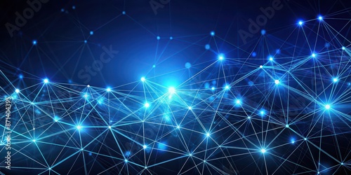 Fototapeta premium Abstract technology background with glowing connections and polygonal mesh pattern on dark blue, technology, abstract