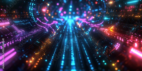 © Tevarplus, Fototapeta premium abstract technology background with glowing lines and dots
