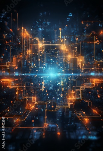 © Nipon, Obraz premium abstract technology background with glowing lines and lights