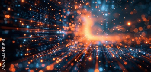Fototapeta premium Abstract Technology Background with Glowing Particle Lines, Digital Data Streams, and Futuristic Light Effects