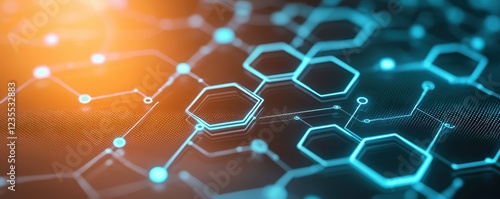 © Jetsomboon, Obraz premium Abstract Technology Background with Hexagons and Lines