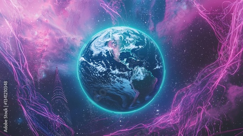 © neiros, Obraz premium Abstract Technology Background with Vibrant Flowing Energy