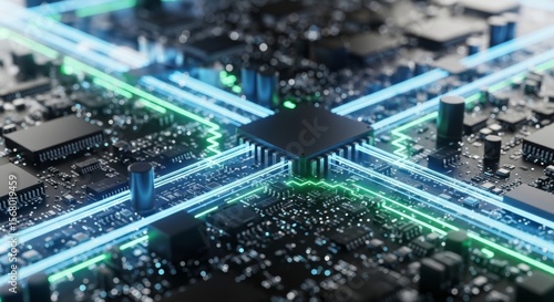 © P AI, Fototapeta premium Abstract Technology Circuit Board with Vibrant Neon Lights