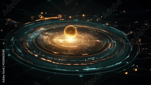 Obraz premium Abstract Technology Core with Glowing Sphere and Circular Data Streams