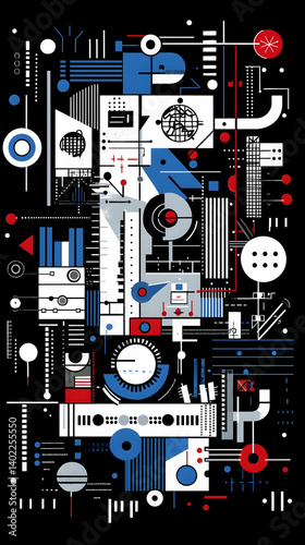 Obraz premium Abstract technology design, data processing, complex system, digital network,...