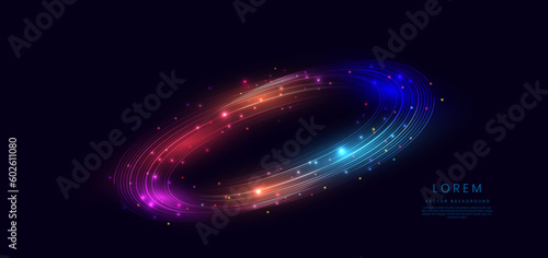 Obraz premium Abstract technology futuristic glowing blue and red light curved lines with high-speed effect on dark blue background.