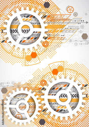 © Alex, Obraz premium Abstract technology gears background. Futuristic style with ora