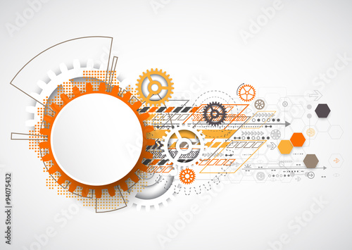 © Alex, Fototapeta premium Abstract technology gears background. Futuristic style with ora