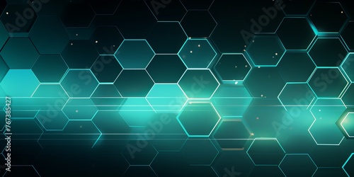 © Dina, Obraz premium Abstract technology green background. Futuristic interface with hexagons