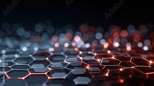 © CLOVER BACKGROUND, Obraz premium Abstract Technology Network Background with Layered Hexagonal Patterns