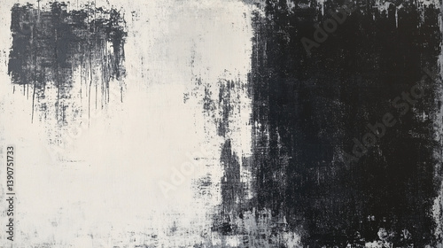 Fototapeta premium Abstract textured background with contrasting black and white sections, distressed surface, grunge effect, artistic composition, creative design element.