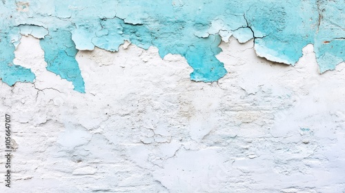 Obraz premium Abstract textured banner featuring white and turquoise aquamarine colors on a light distressed masonry wall with ample copy space