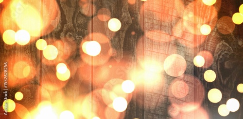 Obraz premium Abstract textured wood surface is glowing in flat design, with warm circular bokeh light orbs