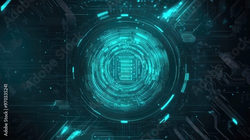 © Cyber Shutter, Obraz premium Abstract Thick Biometric Data Background With Futuristic Green Blue Sci Fi Virtual Hologram And Cyberpunk Effect