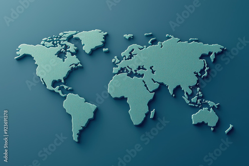 Obraz premium Abstract three-dimensional world map on a textured blue background. Highly detailed continents with a modern design for global concepts and projects.