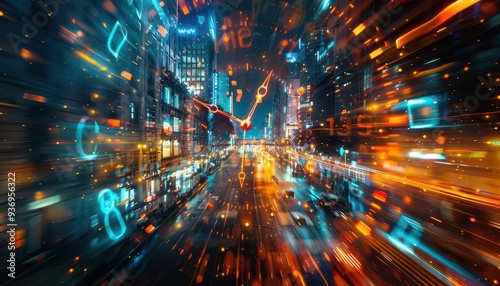 © Nawarit, Fototapeta premium Abstract time passing with blurred clock, Cyberpunk, Bright, Digital, Highlighting fleeting moments