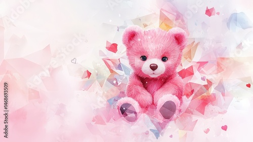 © Rinowz, Obraz premium Abstract tiny teddy illustration, blush pink cubist art on pastel fading background