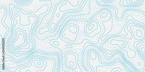 © feroj, Fototapeta premium Abstract topographic contour map pattern in soft blue lines on white background. Minimalist elevation design for geography, mapping, travel, or modern backgrounds. Clean vector style illustration.