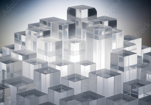 © Sumanto, Obraz premium Abstract translucent blocks composition showcases clarity and structure