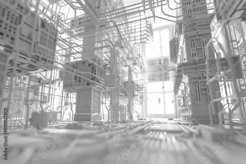 Fototapeta premium Abstract translucent electronics circuit board with glowing light white tone...