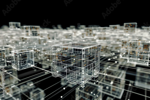 Fototapeta premium Abstract translucent electronics circuit board with glowing light white tone...