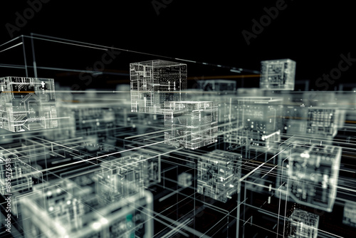 Fototapeta premium Abstract translucent electronics circuit board with glowing light white tone...