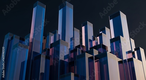 Naklejka premium Abstract Transparent Glass Pillars with Blue and Purple Reflections and...