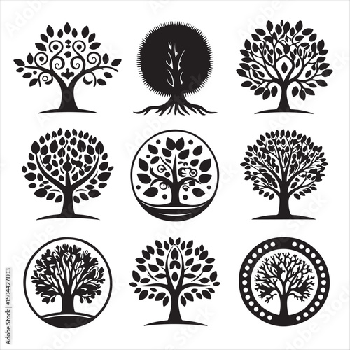 © MdTanim, Naklejka premium abstract tree with roots set of tree wit.