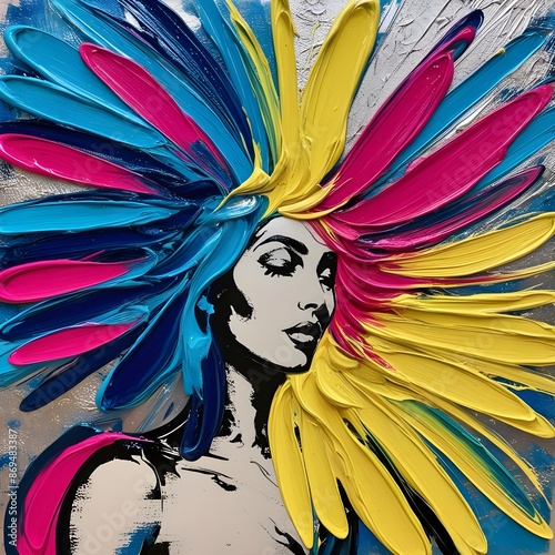 © Ezzah, Naklejka premium Abstract trendy pop art colorful paint brush pattern background. AI generated image Gerenative AI